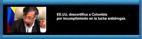 Reciente decisión del gobierno de Estados Unidos de descertificar a Colombia en la lucha contra las drogas, debido al incumplimiento de sus obligaciones en el control de narcóticos durante los últimos 12 meses. Aunque Estados Unidos mantiene que su apoyo financiero, técnico y en seguridad sigue siendo crucial para Colombia, esta ayuda ahora tiene una “matrícula condicional” que depende de cambios en la gestión antidrogas.
