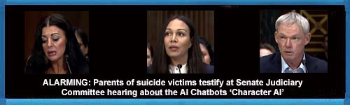 Video: ALARMING - Parents of suicide victims testify at Senate Judiciary Committee about the AI Chatbots 'Character AI'./Video: '764' group grooms kids to cause harm to themselves and others.