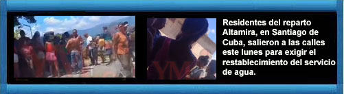 Residentes del reparto Altamira, en Santiago de Cuba, salieron a las calles este lunes para exigir el restablecimiento del servicio de agua potable, tras más de tres meses sin recibir el líquido. Diario de Cuba.