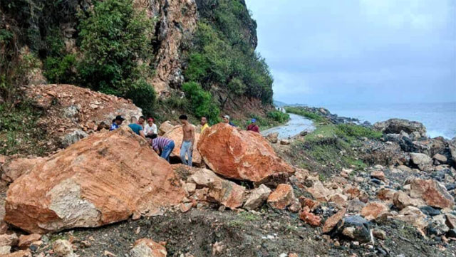 Las lluvias también provocaron incomunicación en comunidades de Guamá, donde enormes rocas bloquearon la carretera a la altura de Babujal. Según publicó en Facebook Aris Arias Batalla, responsable de Operaciones y Socorro de Salud Pública en Santiago, bomberos del Comando 4 Vista Alegre, junto a pobladores y un camión particular, lograron despejar el paso de emergencia para garantizar las labores de rescate.