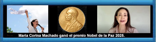 El Comité Noruego del Nobel otorgó el Premio Nobel de la Paz 2025 a la líder venezolana María Corina Machado. El galardón reconoce su “incansable labor en favor de los derechos democráticos del pueblo de Venezuela y su lucha por lograr una transición justa y pacífica de la dictadura a la democracia”.
