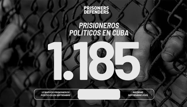 Con estas cifras, el país mantiene un número alarmante de 1.185 personas encarceladas por motivos políticos. En su informe correspondiente a septiembre de 2025, la organización denuncia que el régimen cubano mantiene la represión como mecanismo de control social.