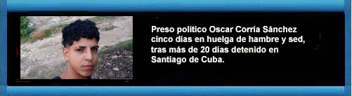 El preso político Oscar Corría Sánchez, arrestado desde hace más de veinte días en la unidad policial de Contramaestre en Santiago de Cuba, se declaró en huelga de hambre, según confirmaron a sus familiares las autoridades policiales.