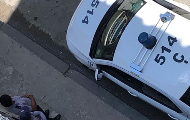 Agentes de policía vigilan la vivienda de un activista de derechos humanos en La Habana.