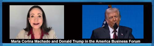 Maria Corina Machado and Donald Trump participate in the America Business Forum