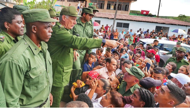 En paralelo, la Presidencia de Cuba publicó un video de la visita de Miguel Díaz-Canel a comunidades arrasadas del municipio El Salvador, en Guantánamo. En las imágenes se escucha a un grupo de personas coreando: "Pa’ lo que sea, Canel, pa' lo que sea", mientras lo tocan y lo rodean.