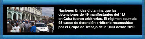 Naciones Unidas dictamina que las detenciones de 49 manifestantes del 11J en Cuba fueron arbitrarias.El régimen acumula 93 casos de detención arbitraria reconocidos por el Grupo de Trabajo de la ONU desde 2019. Diario de Cuba.