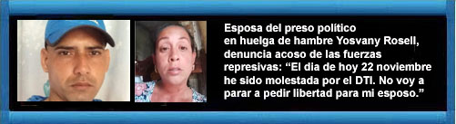 Esposa de preso polĂtico en huelga de hambre denuncia acoso de las fuerzas represivas.