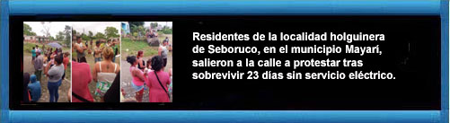 Residentes de la localidad holguinera de Seboruco, en el municipio Mayarí, salieron a la calle a protestar el jueves tras sobrevivir 23 días sin servicio eléctrico. Por Ivette Pacheco. RTV Martí. + video.