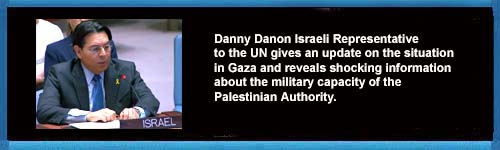 Videos: Israeli Representative at UN Middle East meeting gives update on the situation in Gaza and on the military capacity/mobilization of the Palestinian Authority./ Israeli Media Stakeout.