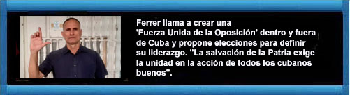 Ferrer llama a crear una 'Fuerza Unida de la Oposición' dentro y fuera de Cuba y propone elecciones para definir su liderazgo. Diario de Cuba./Video UNPACU: Contundente mensaje desde Cuba: Es la hora de unidad.