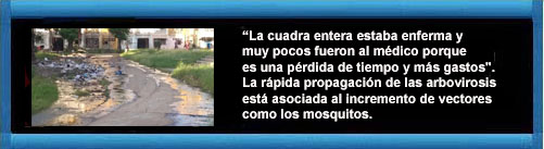 Y asegura: "aquí en Santiago en casi todas las casas hay alguien con un virus, sea chikungunya, dengue o lo que sea. A mi casa lo trajo mi hija, después lo cogí yo y por último mis nietos, y ninguno fuimos al políclinico ni al consultorio. La cuadra entera estaba enferma y muy pocos fueron al médico porque es una pérdida de tiempo y más gastos".