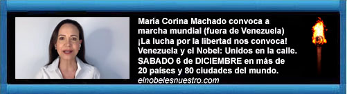 Video Venezuela en Vivo: Maria Corina Machado convoca a marcha mundial el 6 de diciembre por El Premio Nobel de la Paz./Presidentes latinoamericanos y una congresista de EEUU acompañarán a María Corina Machado a recibir el Nobel. RTV Martí.