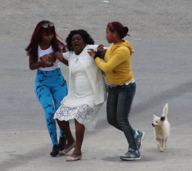 Berta Soler , quien fue liberada por orden de los represores de la Seguridad del Estado sin ser multada y amenazada , habĂa sido arrestada (foto del Post, corresponde al arresto ) .