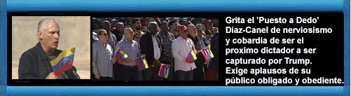 Video: Grita el 'Puesto a Dedo' Díaz-Canel de nerviosismo y cobardía de ser el proximo dictador a ser capturado por Trump. Exige aplausos de su público obligado y obediente./CiberCuba: comentarios de los cubanos.