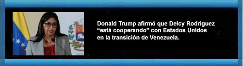 El presidente Donald Trump afirmó el domingo por la noche que Delcy Rodríguez “está cooperando” con Estados Unidos, en el marco de la transición política en Venezuela, según declaró a periodistas a bordo del Air Force One.