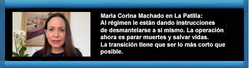 Video La Patilla: Maria Corina Machado - Al régimen le están dando instrucciones de desmantelarse a si mismo. La operación ahora es parar muertes y salvar vidas. La transición tiene que ser lo más corto que posible.