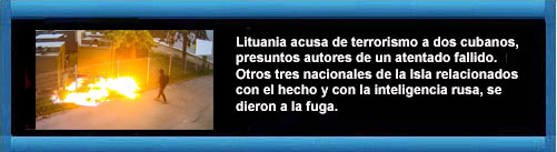 Lituania acusa de terrorismo a dos cubanos, presuntos autores de un atentado fallido. Otros tres de Cuba relacionados con el hecho y con la inteligencia rusa, se dieron a la fuga. DDC./ Tres cubanos buscados por terrorismo en Lituania.RTV Martí.