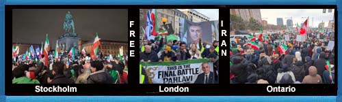 Videos: Free Iran march in Ontario./Iranians Rise up Outside BBC HQ in London./Demonstration for Iran's freedom in Stockholm.