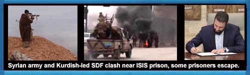 Video Channel 4: Syrian army and Kurdish-led SDF clash near ISIS prison despite ceasefire, some prisoners are reported to have escaped.