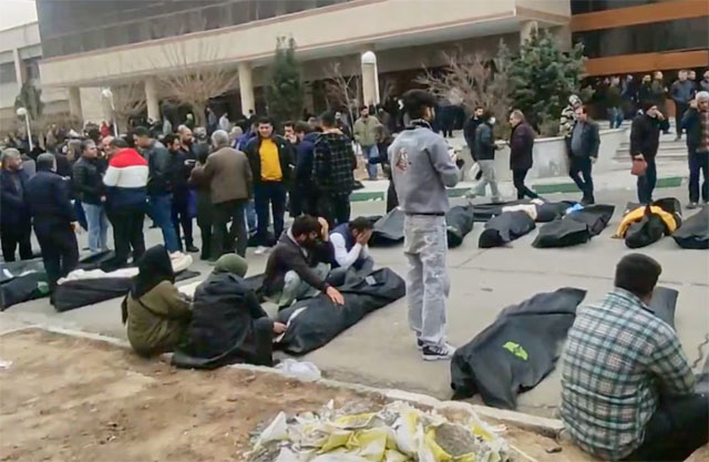 Oficiales del Ministerio de Salud iraní revelaron que la escala de la matanza el 8 y 9 de enero fue tal que agotó las bolsas para cadáveres y obligó a usar camiones de 18 ruedas para trasladar los cuerpos. La mortalidad en un período tan breve no tiene precedentes modernos