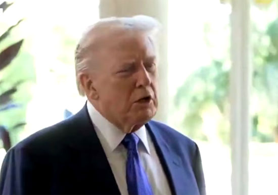El presidente Donald Trump habla con periodistas en Mar-a-Lago, en Palm Beach, Florida.
