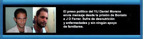 Video UNPACU: El preso político del 11J Daniel Moreno envia mensaje desde la prisión de Boniato a J D Ferrer. Sufre de desnutrición y enfermedades y sin ningún apoyo de familiares.