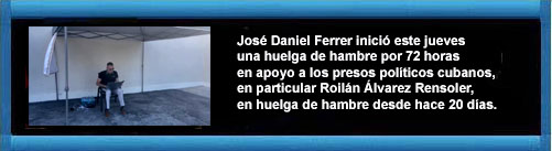 El líder de la Unión Patriótica de Cuba (UNPACU) José Daniel Ferrer, en el exilio desde hace cuatro meses, inició este jueves una huelga de hambre por 72 horas en apoyo a los presos políticos cubanos, en particular Roilán Álvarez Rensoler, recluido en un centro de detención de Holguín y en huelga de hambre desde hace 20 días.