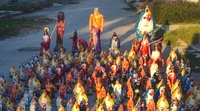Bajo la curaduría de la activista Anamely Ramos y con el apoyo de la revista independiente El Estornudo, la obra supuso el despliegue, en una calle de la barriada habanera de Párraga, de decenas de figuras de santos de diferentes tamaños y colores, dispuestas en forma de marcha.