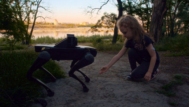 La segunda pieza, Open World [Mundo abierto] (2025), presentada en la 36ª Bienal de Artes Gráficas de Liubliana, es una videoinstalación que articula códigos del videojuego con recursos del cine documental. Tres años después de la invasión, acompaña a un joven ucraniano desplazado por la guerra mientras teledirige un perro robótico de uso militar para recorrer las calles y los lugares de su infancia. Al resignificar un dispositivo diseñado originalmente para la vigilancia y la destrucción en un medio de vínculo y comunicación, los artistas invitan a reflexionar sobre la idea de resiliencia, el recuerdo y la posibilidad de conservar un sentido de pertenencia a pesar de la distancia.