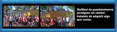 Video UNPACU: Multitud de guantanameros persiguen un camión tratando de adquirir algo que comer.