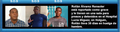 Roilán Álvarez Rensoler está reportado como grave y le tienen en una sala para presos y detenidos en el Hospital Lucía Iñiguez, en Holguín. Roilán lleva 36 dias en huelga de hambre. Informa J D Ferrer.+video.