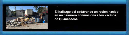 Vecinos del municipio habanero de Guanabacoa, en La Habana, encontraron el viernes el cadáver de un recién nacido en un basurero. Según relataron residentes de la zona a 14ymedio, el bebé fue encontrado dentro de una caja, en la calle Martí, entre Máximo Gómez y Béquer, por trabajadores de los servicios comunales que realizaban labores de recogida de desechos en el lugar.