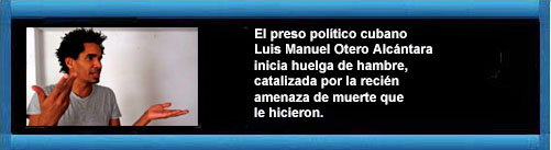 Preso político cubano Luis Manuel Otero Alcántara inicia huelga de hambre, "catalizada por la recién amenaza de muerte que le hicieron". RTV Martí.