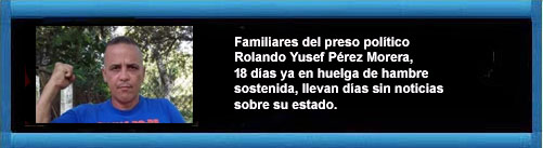 Familiares del preso político Rolando Yusef Pérez Morera, 18 días ya en huelga de hambre sostenida, llevan días sin noticias sobre su estado. Por Yolanda Huerga. RTV Martí.