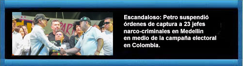 El gobierno de Gustavo Petro ordenó la suspensión de órdenes de captura contra 23 cabecillas de organizaciones criminales que operan en Medellín y el Valle de Aburrá, una medida que ha generado rechazo de autoridades locales y candidatos presidenciales en medio de la campaña electoral en Colombia. La resolución del 27 de marzo de 2025, firmada por la fiscal general Luz Adriana Camargo, argumenta que los beneficiados "demuestran una voluntad genuina de tránsito hacia el Estado de Derecho" y busca facilitar su participación en mesas de negociación del proceso denominado "paz total". La suspensión aplica en Medellín, los municipios del Valle de Aburrá y, cuando sea necesario, en Bogotá para asistir a reuniones.