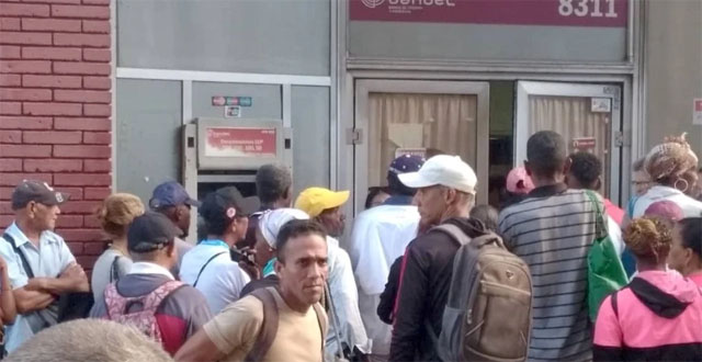 Cubanos intentando obtener dinero en efectivo en Santiago de Cuba tras cobrar sus salarios y pensiones. Diario de Cuba