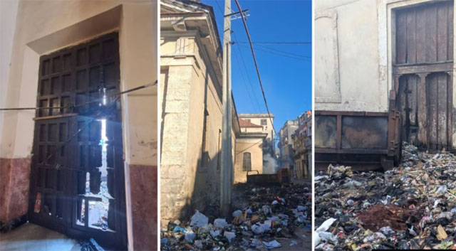 Un representante de los Escolapios en Cuba dijo a Martí Noticias que el basurero lleva meses en la esquina del templo sin ser recogido. Los religiosos temen que un incendio mayor se extienda al techo de la parroquia.