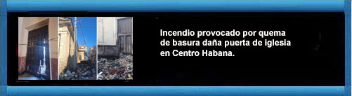 Incendio provocado por quema de basura daña puerta de iglesia en Centro Habana. RTV Martí.