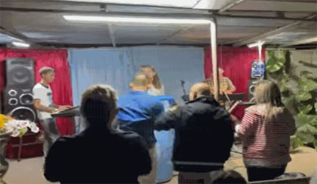 Jonathan toca la pianola en un servicio de la iglesia Tiempo de Cosecha, en Morón, que lleva su padre, el pastor Elier Muir.