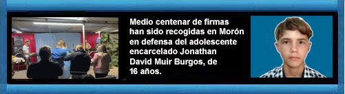 Medio centenar de firmas han sido recogidas en Morón en defensa del adolescente encarcelado Jonathan David Muir Burgos, de 16 años, quien permanece recluido en la prisión de máxima seguridad de Canaleta, en Ciego de Ávila, tras las protestas del 13 de marzo.