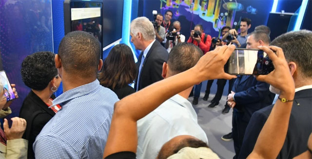 Miguel Díaz-Canel en el stand de Inteligencia Artificial, FIHAV 2025. Facebook/MINCOM Cuba